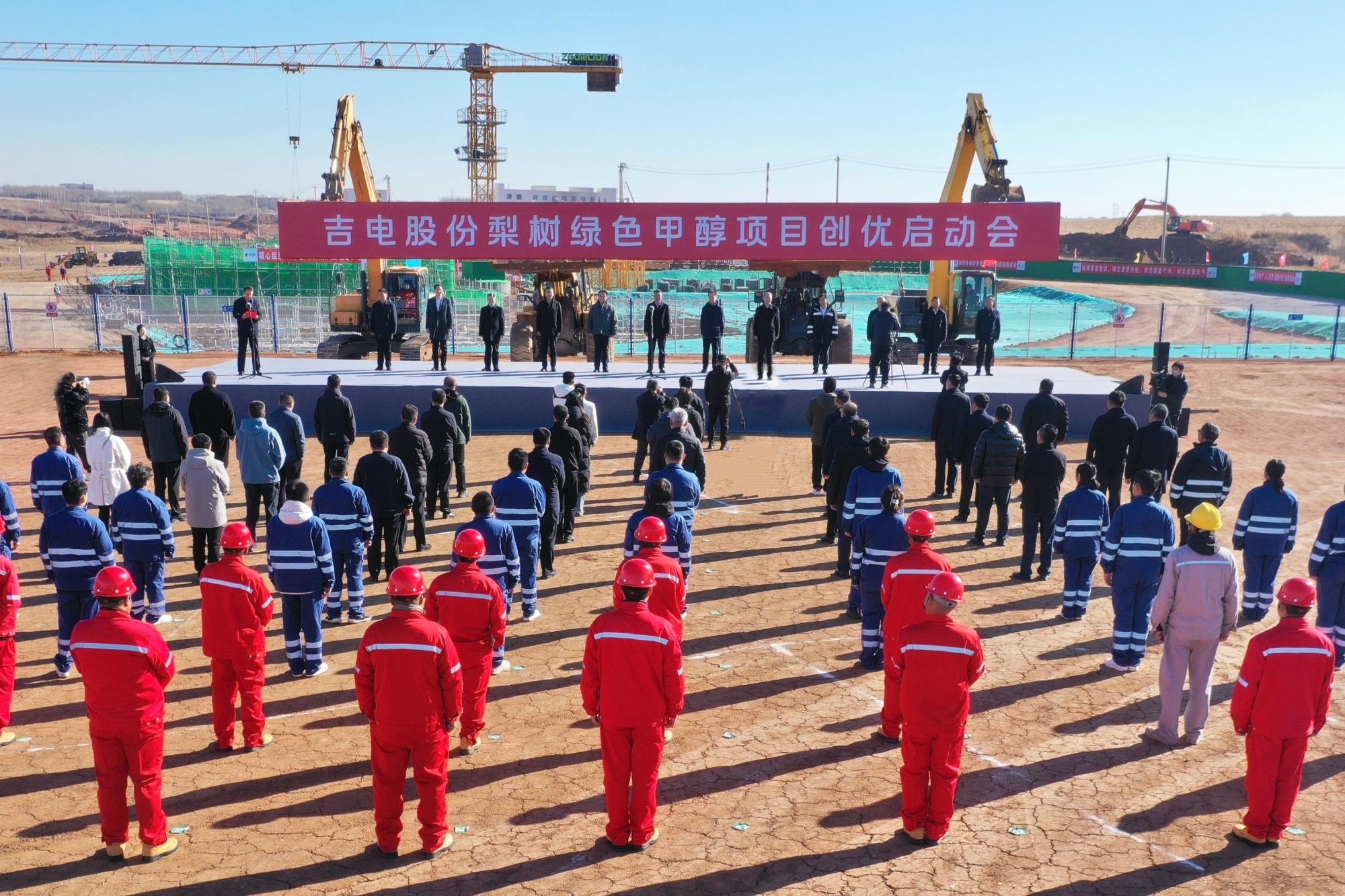 10月30日,由国家电投集团吉电股份牵头,联合中远海运、上港集团共同投资建设的国内首个贯通“绿醇生产—燃料加注—远洋航运”全链条的绿色甲醇示范项目——吉电股份梨树风光制绿氢生物质耦合绿色甲醇项目,在吉林四平启动创优建设。
