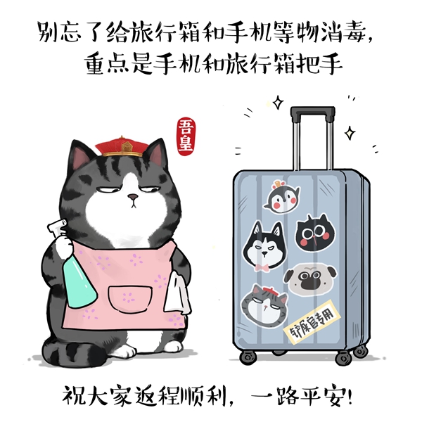 你看,卡通形象“吾皇”和“巴扎黑”戴上口罩,主动为我们演示如何做好防护,平安出行。一份漫画版《返程复工防护知识指南》,送给正在返程和即将返程复工的小伙伴们,清查收!