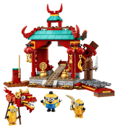 75550小黄人比武大赛玩具套装包含了3位穿着练功服装的乐高®小黄人,还搭配有金色香蕉、兵器架、武器、可旋转的练功桩、中国龙、奖章及可发射的“烟花”等配件,能够将中国农历新年的元素带给所有的小黄人粉丝们。通过使用兵器架及练功桩,在角色扮演游戏中提高小黄人的功夫技能,除此之外,还可以在寺庙顶部发射“烟花”,在欢庆的气氛中与小黄人一起表演舞龙节目。