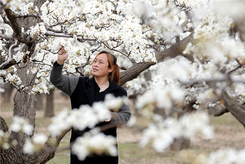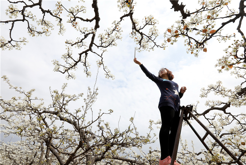 眼下,河北省衡水市阜城县霞口镇3万余亩梨树进入花期,当地果农抢抓农时为梨花授粉。