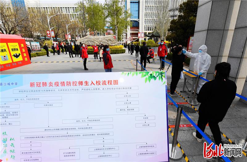 2020年4月10日,河北省怀来县沙城中学进行模拟开学演练,从学生入校、上课、用餐、住宿等方面做到疫情防控全覆盖,并进一步提高应急处置能力,为开学后广大师生身体健康保驾护航。通讯员孙慧军摄影报道