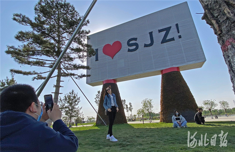 2020年4月26日,石家庄市民在滹沱河畔拍照留影。河北日报记者田明摄影报道