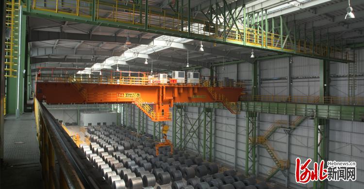 图为在首钢京唐公司高强度钢连续酸洗生产线上,无人操控天车正在进行作业。 通讯员宋海洋摄