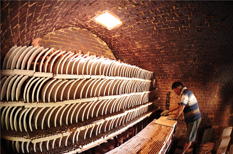 河北省任丘市出岸镇有一座始建于清朝道光年间的古砖窑,在此基础上建成的任丘市出岸镇古建砖厂,一直遵循传统手工制砖工艺流程,成品色泽青蓝,古色古香。