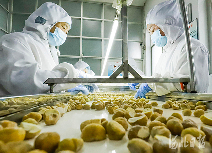 2020年8月13日,河北省遵化市广汇食品有限公司员工在加工栗仁。河北省遵化市有板栗企业30余家,年加工板栗5万多吨。目前,板栗加工企业正加紧生产,确保完成外贸订单。 通讯员 刘满仓摄影报道
