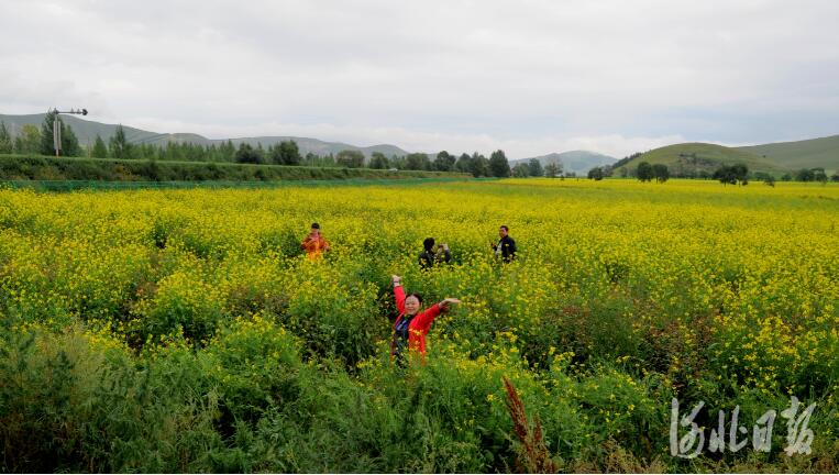 8月21日,游客在河北省丰宁满族自治县大滩镇的油菜花片区游玩。河北省丰宁满族自治县围绕吃、住、行、游、购、娱做文章,通过改造旅游路网,发展农家乐,挖掘传统文化,推动草原生态旅游提档升级,促进农牧民致富增收。河北日报记者杜柏桦摄影报道
