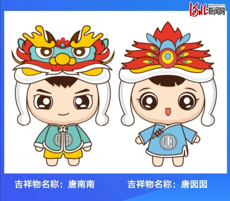 此外,发布会还公布了本届大会的吉祥物,唐南南、唐囡囡。其中,唐南南为男性造型,头戴龙头帽,灵感来源于南湖旅游景区标志性建筑“龙山阁”,龙也代表着唐山像一条巨龙一样蓬勃发展。唐囡囡为女性造型,头戴凤头帽,灵感源于南湖旅游景区的标志性建筑“丹凤朝阳”,凤也代表着城市凤凰涅槃,浴火重生。两个吉祥物都身穿传统服饰,且上面绣有“唐”字花纹,展现了城市的悠久历史,精彩传承。