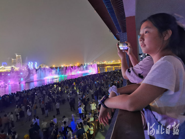 9月4日晚,石家庄市滹沱河生态区的“光影水秀”上演了向市民开放的首秀。音乐喷泉水秀、山体灯光秀、水幕电影、光影水秀山水联动——四个环节精彩不断、高潮迭起,音乐、喷泉、激光交相融合,引得观看市民阵阵欢呼。