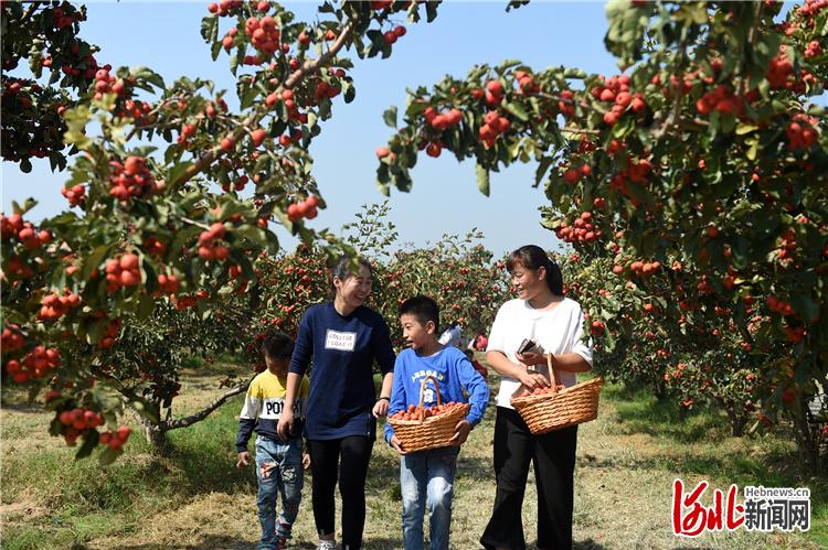 2019年9月26日,游客在河北省清河县马屯山楂观光旅游区采摘山楂。近年来,“中国山楂之乡”清河县大力实施乡村振兴战略,将休闲观光农业、美丽乡村建设与脱贫攻坚工作相结合,依托万亩山楂观光旅游区打造乡村生态旅游品牌,积极推动农旅融合,带动了13个村2100余户种植户致富增收。河北日报记者赵永辉摄