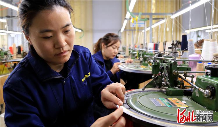河北红太羊绒公司缝合车间工人对羊绒制品进行缝合。通讯员宋红雷