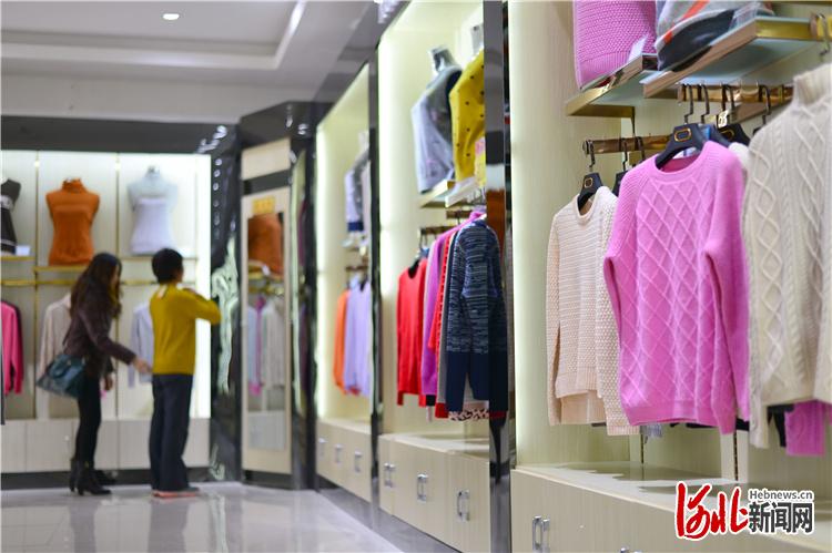 消费者在清河羊绒小镇选购羊绒服饰。(资料照片) 河北日报记者赵永辉摄