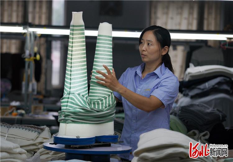位于清河县的河北利意蒙羊绒制品有限公司工人在检验羊绒衫质量。 河北日报记者赵永辉摄
