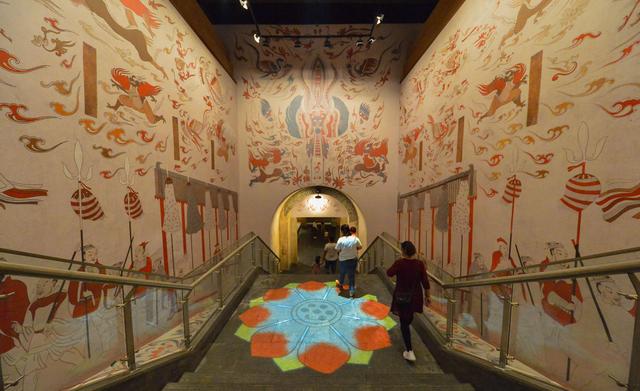 9月19日,游客在河北磁县北朝考古博物馆湾漳北朝大型壁画墓(1:1复原墓)内参观。新华社发