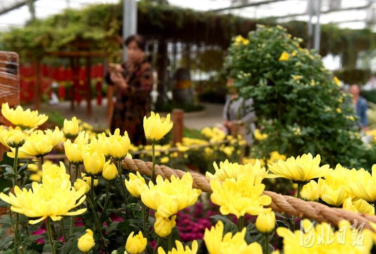 10月2日,游客在河北省邢台市南和区金秋菊展上观赏菊花。河北日报记者赵永辉摄