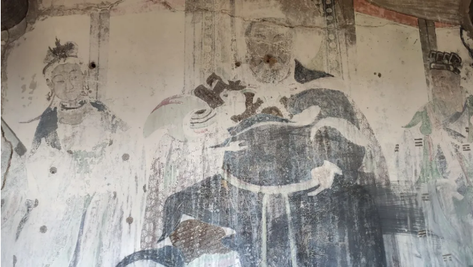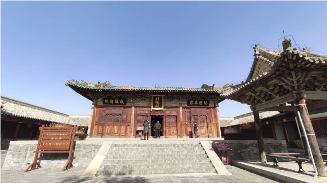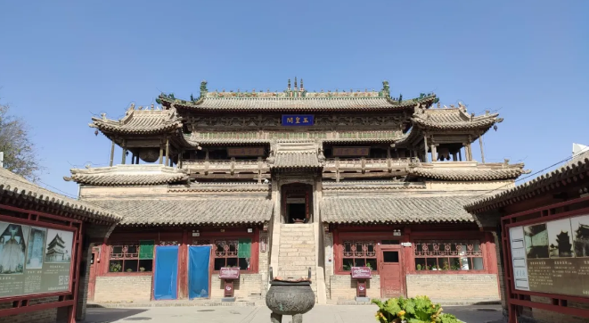 堡门内侧的玉泉寺是王振家庙,大殿采用单檐庑殿式屋顶——这是中国古代最高级别的屋顶建筑样式,庄重宏伟,颇具皇家风范。殿内左右墙壁绘有壁画,人物众多,栩栩如生,堪称精品。