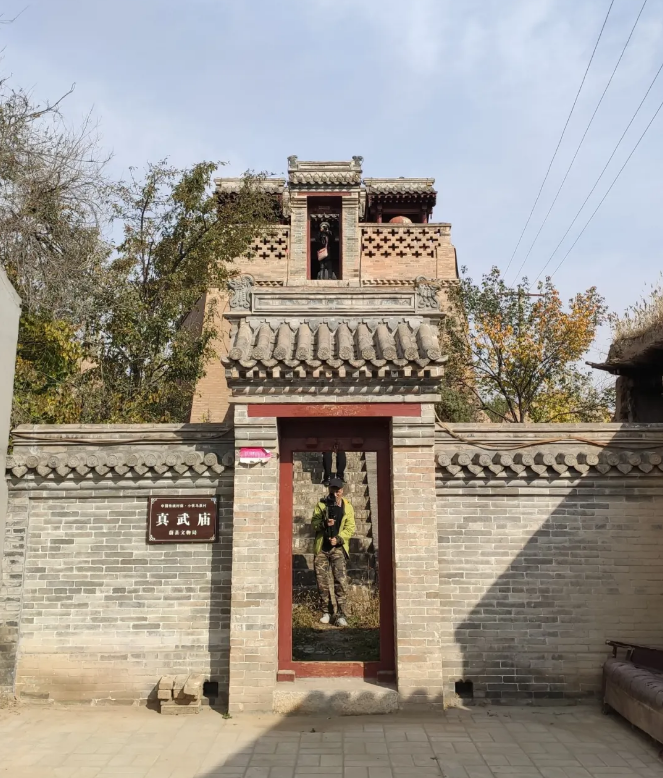 主街尽头,是建于高台之上的真武庙。庙宇不大,却颇有味道——陡峭的台阶,让登庙过程显得异常神圣。穿门进庙,正中供奉着真武大帝的画像,画工精致。环绕庙宇行走,村堡景观尽收眼底。
