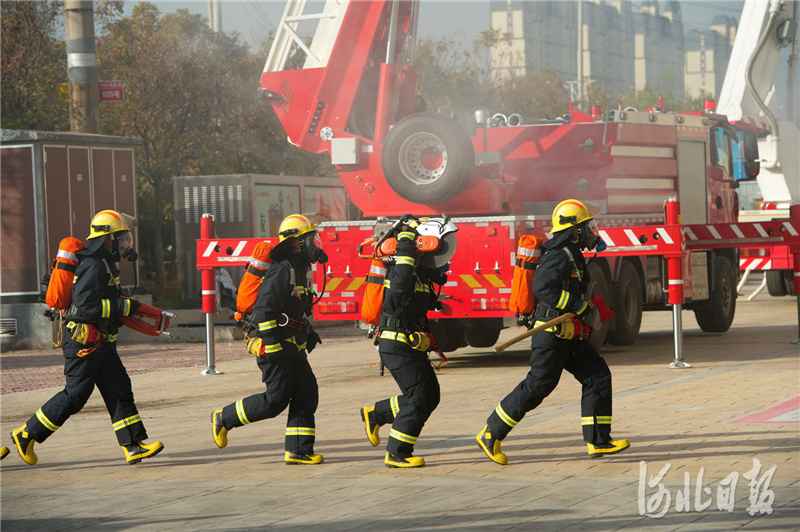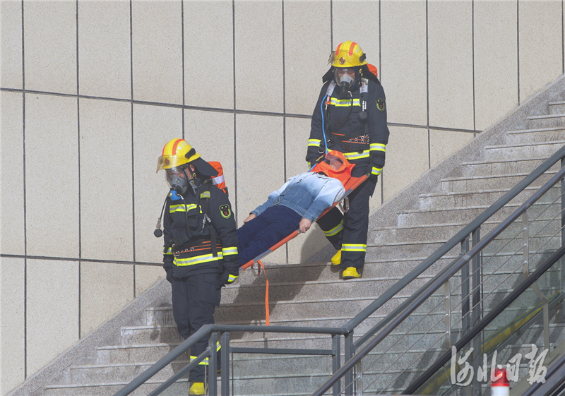 “火灾”模拟演练现场。河北日报记者田明摄影报道