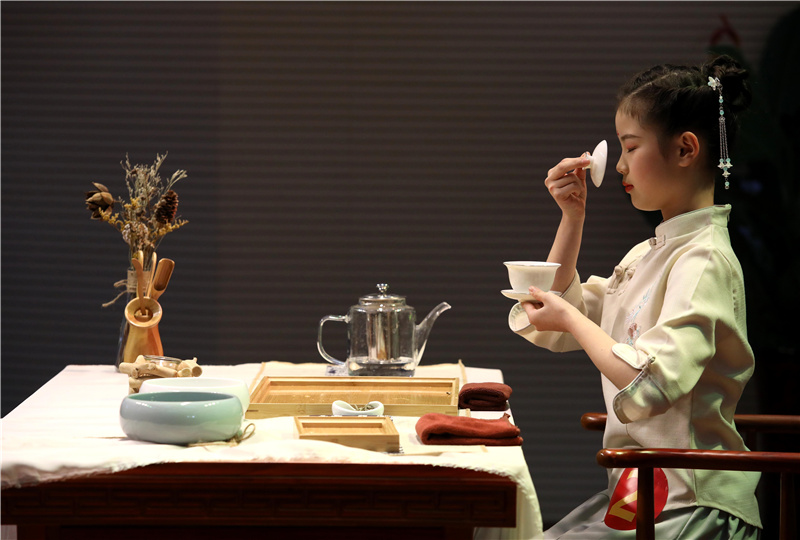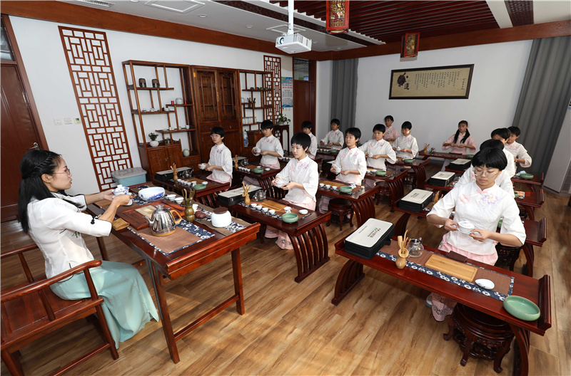 近年来,河北省石家庄市无极县开展“茶文化进校园”活动,通过“小小茶艺师”“百名茶艺师培训计划”等,促进校外教育与学校教育有效衔接,让孩子们学习茶艺,了解茶文化,感悟茶文化的精髓与魅力。新华社发(梁子栋 摄)