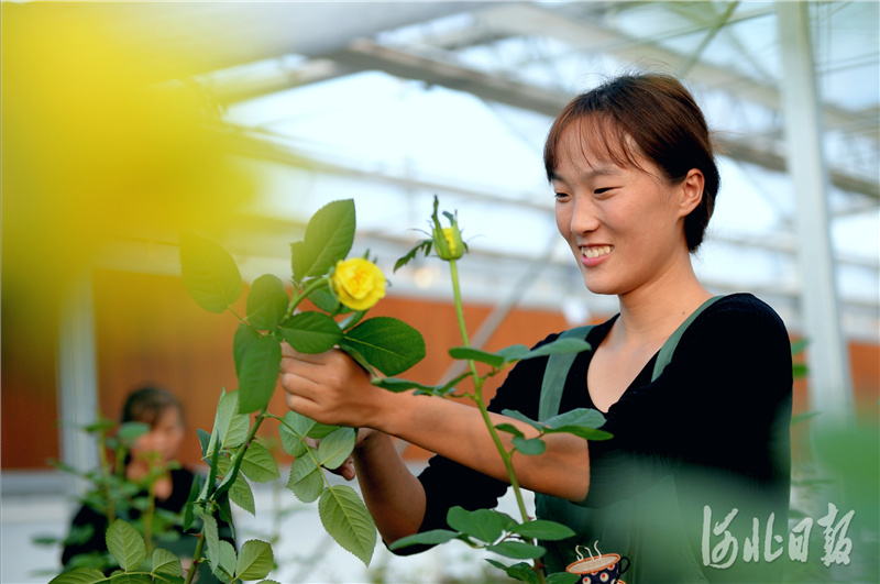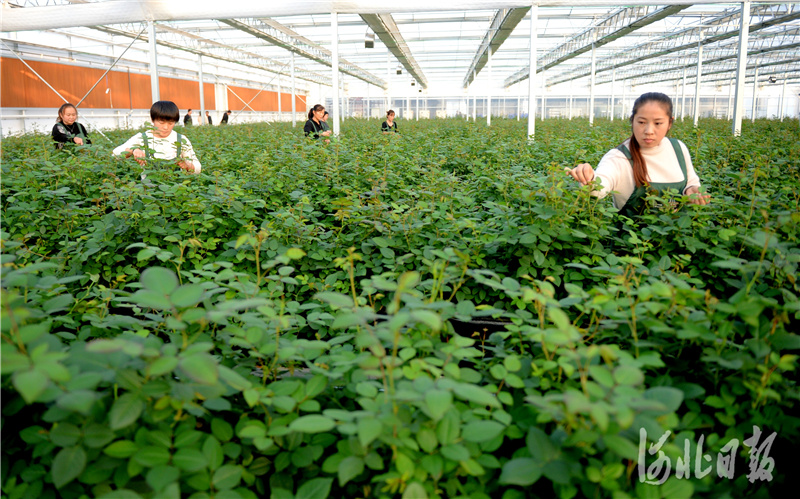 2020年11月20日,河北省邱县盛水湾生态产业集聚区玫瑰产业园内,工人正在温室大棚内采摘玫瑰花蕾。河北日报记者杜柏桦摄影报道