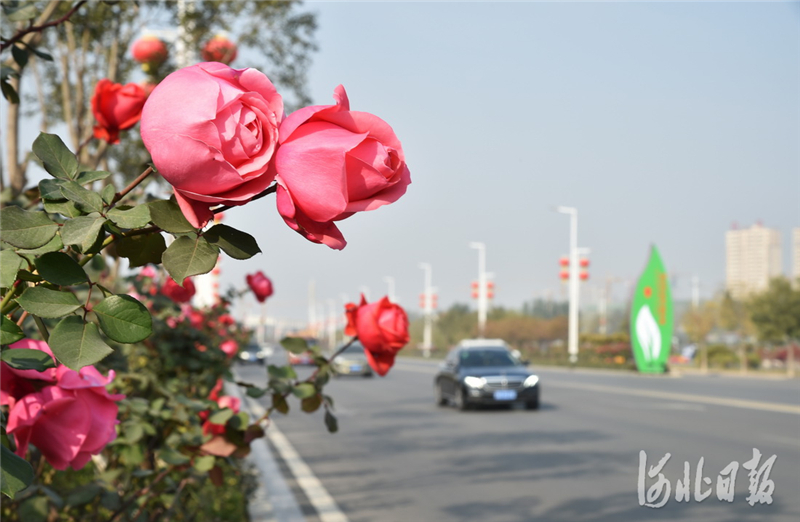 2020年11月13日,河北大道旁高杆月季仍在绽放。 河北日报记者赵海江摄