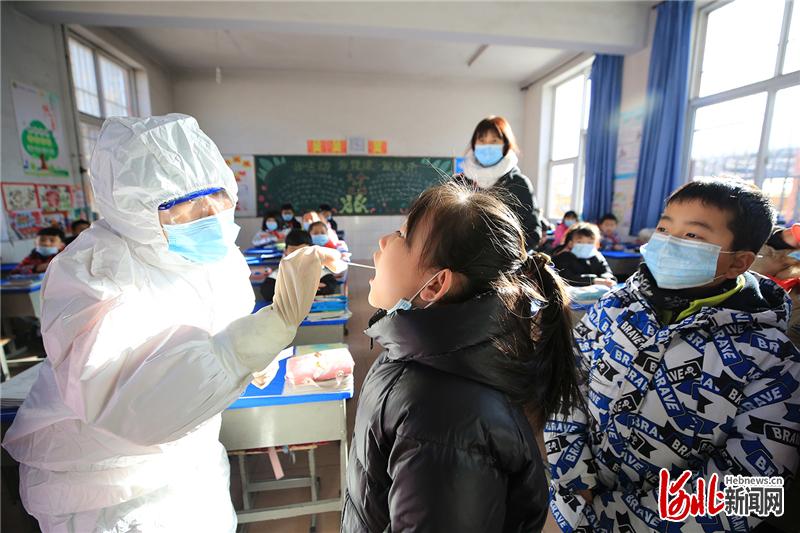 2021年1月7日,河北省唐山市迁西县第三实验小学学生做核酸检测。当日,河北省迁西县对所有学校师生进行免费核酸检测,严格落实应检尽检,不漏一人,筑牢校园安全防线。 通讯员王爱军摄影报道