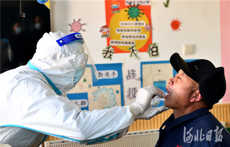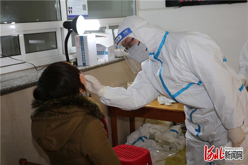 2021年1月7日,在河北省石家庄晋州市周家庄新民居检测点,医护人员对一名居民进行核酸检测采样。 通讯员 贾再兴摄影报道