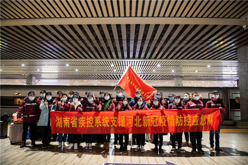 当日,湖南省流行病学调查队23名队员乘高铁前往河北省石家庄市,协助当地开展新冠肺炎疫情防控工作。新华社记者陈思汗摄