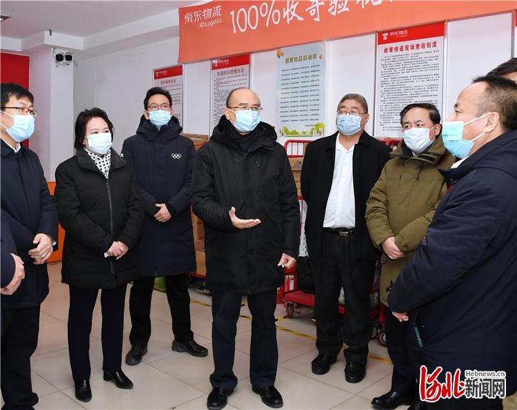 1月9日,省长许勤在石家庄市检查疫情防控工作。这是许勤到京东快递石家庄雅清营业部检查快递业恢复情况。 河北日报记者孟宇光摄