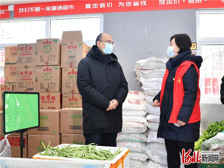 1月9日,省长许勤在石家庄市检查疫情防控工作。这是许勤来到拥有6000多人的棉四生活区,实地查看小区便利店的商品配送等情况。 河北日报记者孟宇光摄