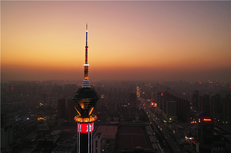 1月18日拍摄的石家庄电视塔(无人机照片)。