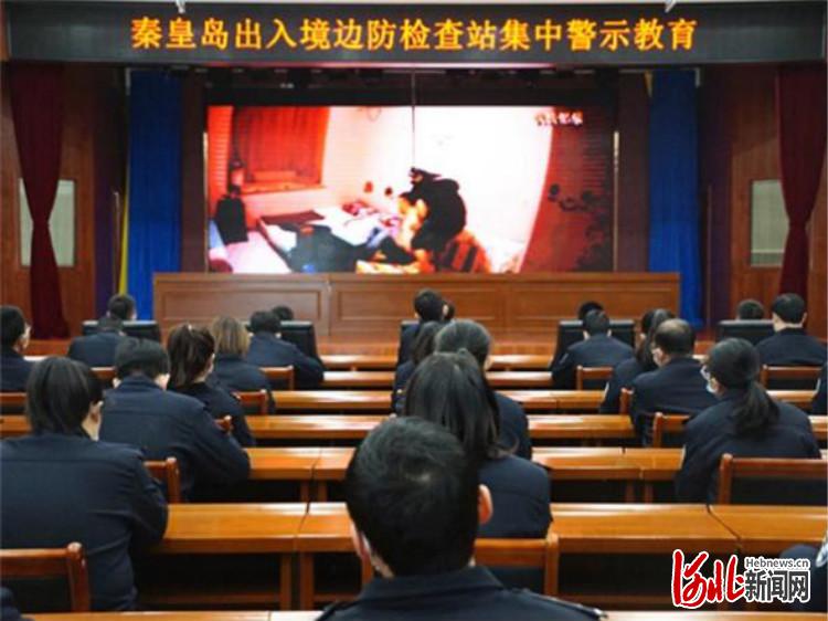 河北边检总站组织观看警示教育片《警钟》。林孟摄