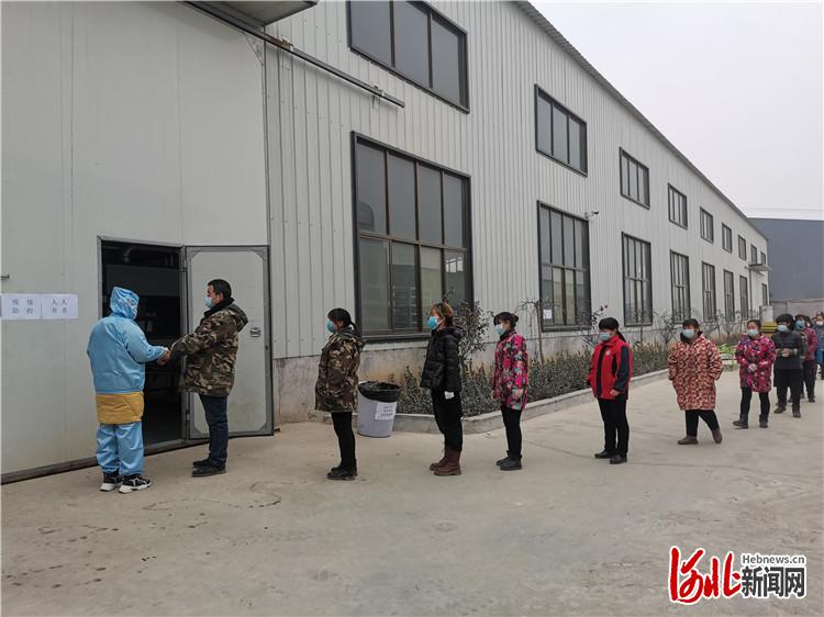 1月24日下午,位于赞皇经济开发区的石家庄乾星科技有限公司正式复工复产。图为员工有序进入生产车间。张玉乾供图