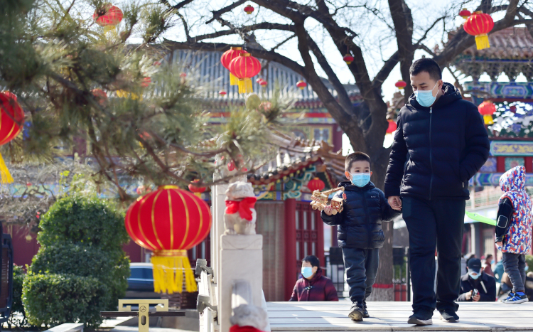 2021年2月16日,正月初五,市民和游客在正定古城恢复开放的正定荣国府景区游览。2月12日,正定县隆兴寺、荣国府、南城门、阳和楼等9个景区景点在充分做好各项疫情防控工作的前提下,恢复开放室外部分,市民和游客均按照“预约、限流、错峰”的游览要求,通过预约平台提前预约,安全有序游览景点,在古城古韵中享受春节假期。河北日报通讯员张晓峰摄