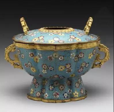 清晚期掐丝珐琅团花纹菱花式火锅 故宫博物院藏