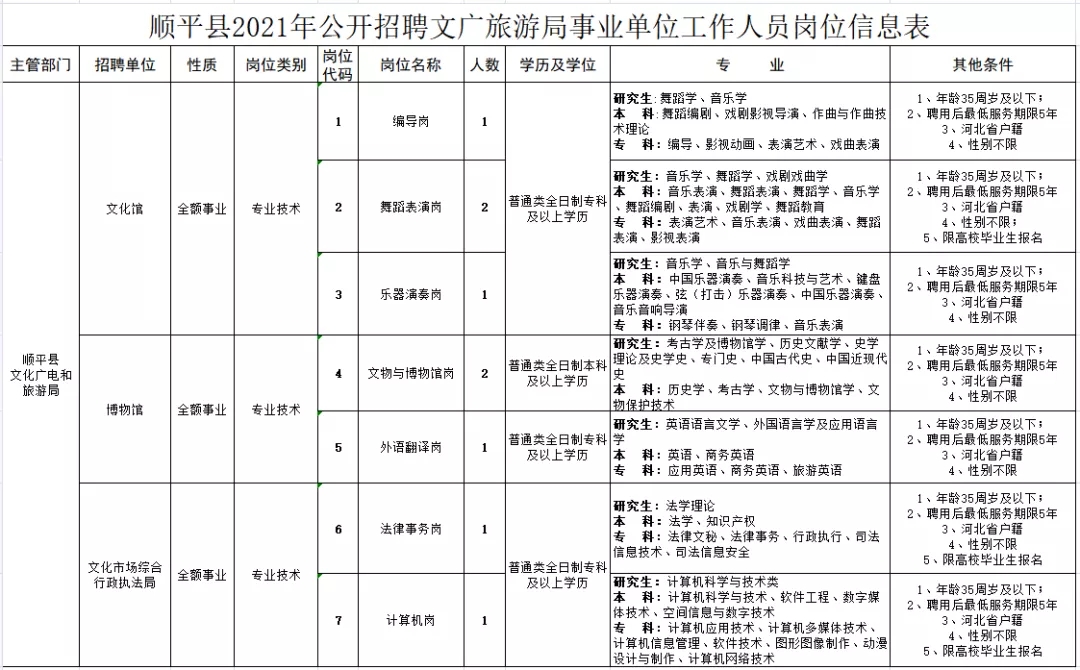 △顺平县人力资源和社会保障局2021年公开招聘文化广电和旅游局事业单位工作人员的公告