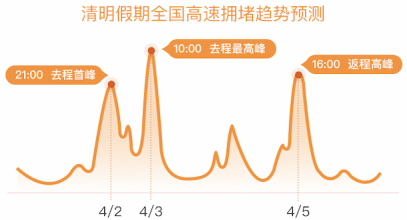 据百度地图预测显示,今年清明节前后将出现三个较为突出的拥堵高峰。