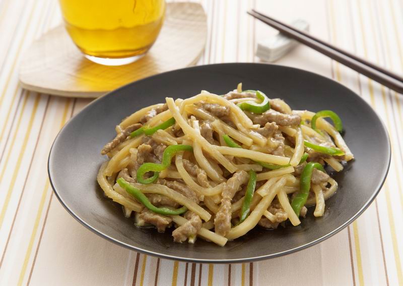 3、喜欢吃肉的可以适当地在其中加入少许肉丝,要是觉得鲜度不够,可以加一点点味精调味。味精其实并不可怕,适量加入菜肴的确可以使菜品的风味有所提升。