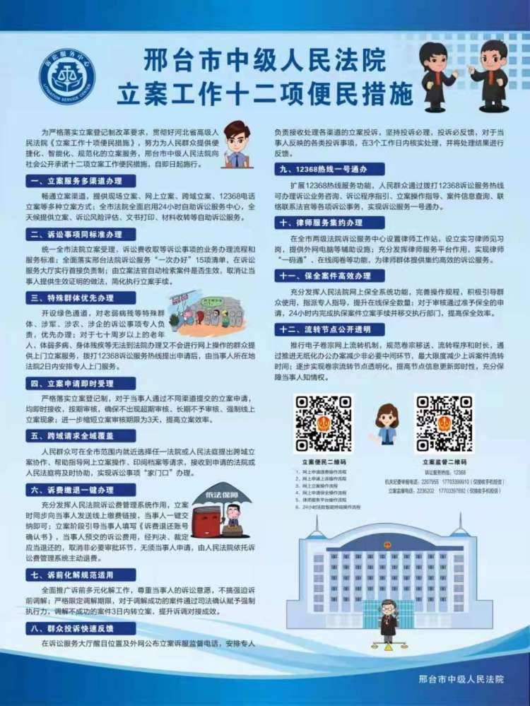 原标题:河北邢台法院公开承诺12项立案便民举措