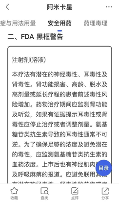 FDA 关于阿米卡星的黑框警告 来自用药助手 App