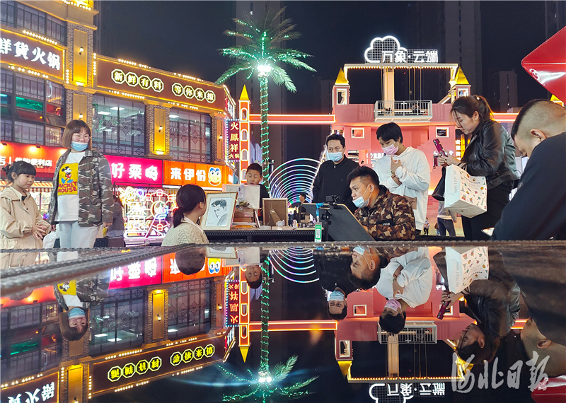 在流光溢彩的氛围中,人们在火车头步行街上或休闲游玩,或品尝美味,或自由购物,在惬意中感受着石家庄这座城市的历史记忆和青春活力。 河北日报记者贾恒摄影报道