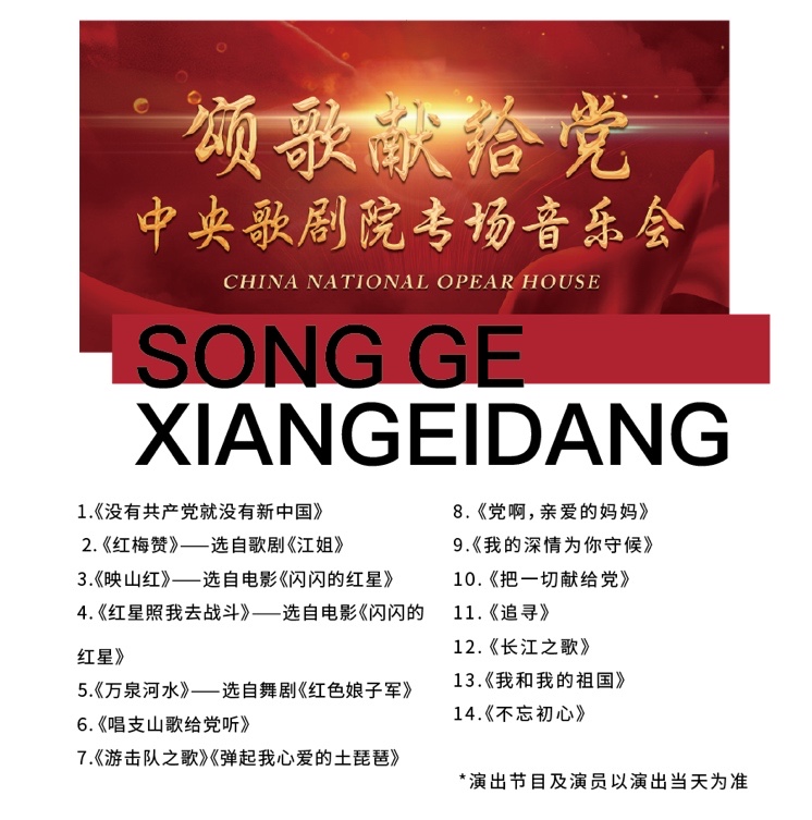 6月3日,为中央歌剧院带来的《颂歌献给党》专场音乐会: