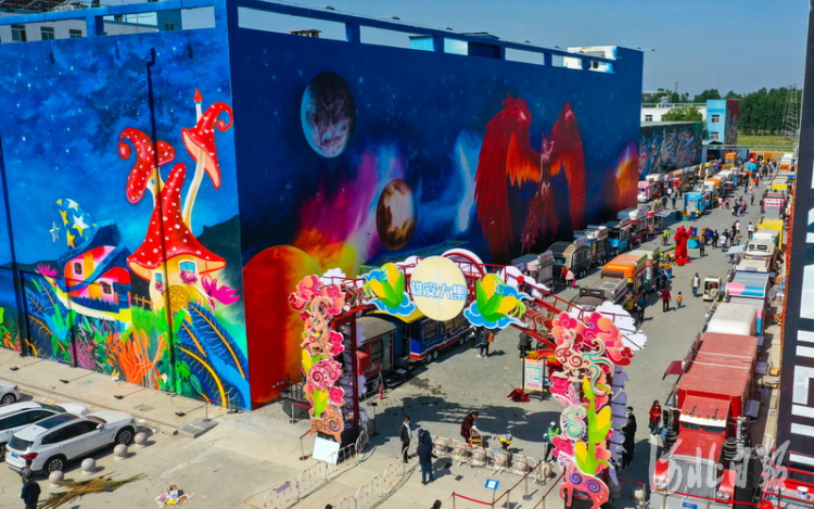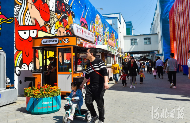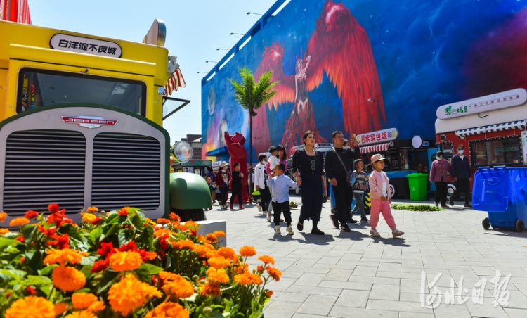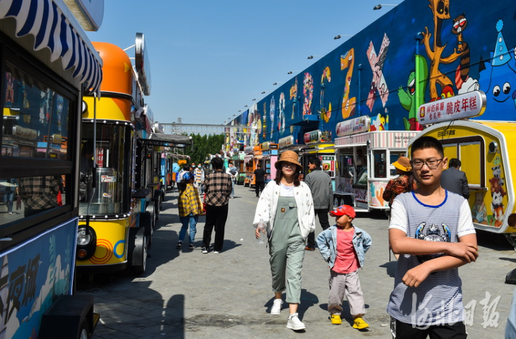 2021年5月2日拍摄的安新县白洋淀不夜城美食一条街。白洋淀不夜城项目集旅游、休闲、美食、商业等于一体,一站式为消费者提供“吃喝玩乐购”服务,并与周边传统旅游项目相互带动,是安新县全域旅游的重要组成部分。河北日报记者耿辉摄影报道