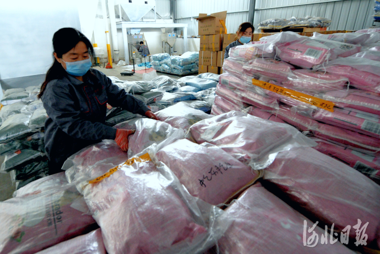 近日,河北省邢台市南和区河郭镇一家宠物用品企业员工在整理产品。河北日报记者杜柏桦摄影报道