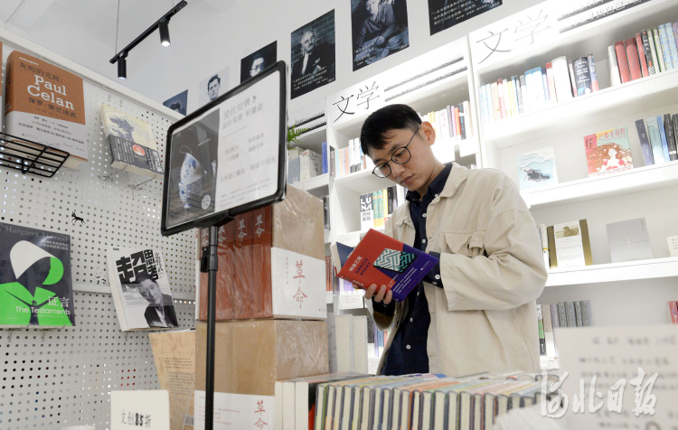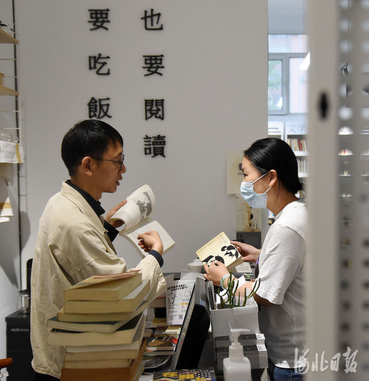 2021年5月15日,读者在“人间食粮”书店选购书籍。通讯员郝群英摄影报道