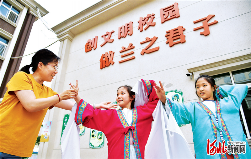 “一位手、二位手,好,保持……”5月26日15时56分,邯郸市丛台区荀子实验小学的老师在教学生练习舞蹈动作,孩子们学得认真,老师教得仔细。荀子实验小学先后开设了115门个性化课后服务课程,为学生打造课后的“幸福时光”。