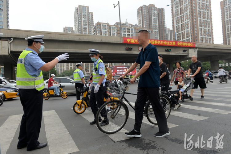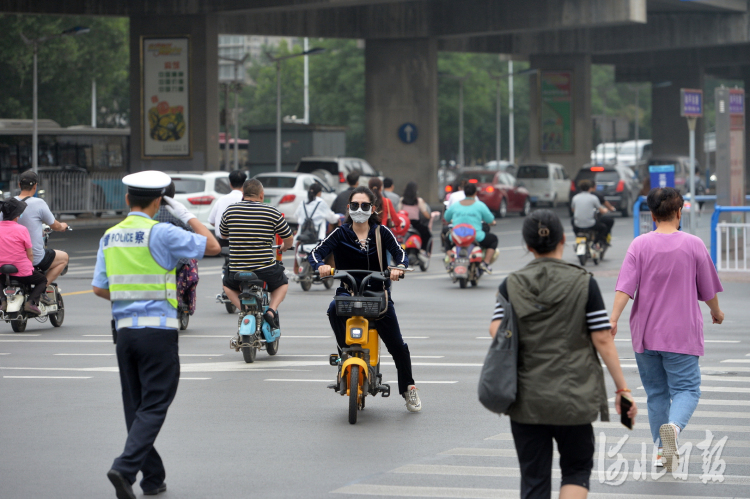 6月15日,石家庄市长安交警大队在辖区进行电动自行车交通违法行为专项整治行动。河北日报记者田明摄影报道