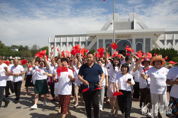2021年6月18日,河北沧州献县的马本斋纪念馆广场迎来身着“冀忆红色足迹 凝聚无限力量”字样白色T恤的参观者,他们是参加这次主题活动的热心网友。