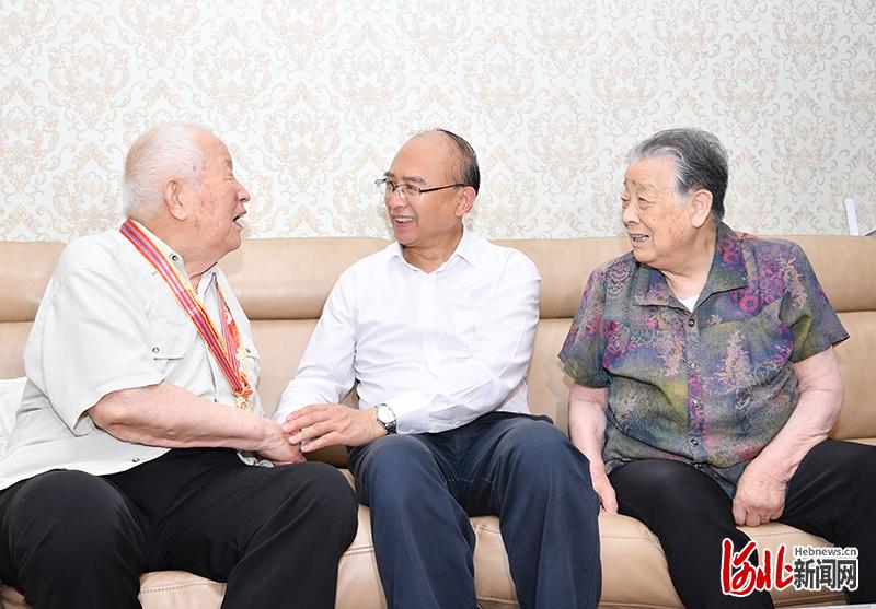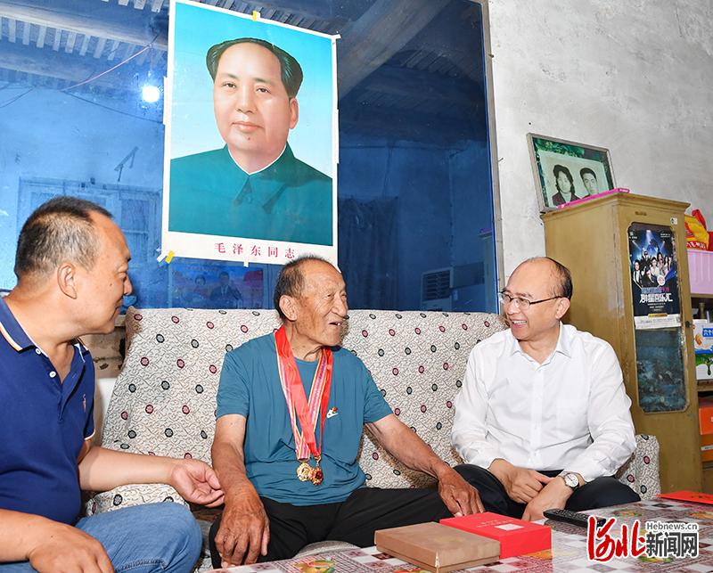 6月23日,省委副书记、省长许勤到邢台市走访慰问获得党内功勋荣誉表彰的党员、生活困难党员、老党员。这是许勤来到90岁的老党员程玉林家中慰问,与他一起追忆革命战争年代的峥嵘岁月,畅谈新时代的幸福生活。河北日报记者孟宇光摄