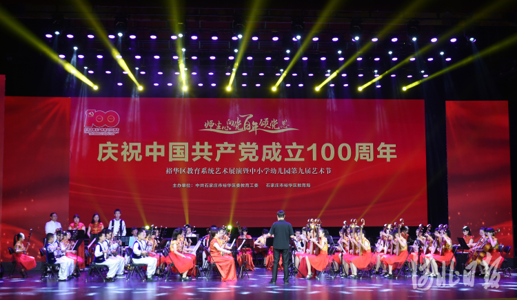 2021年6月30日,石家庄市裕华区教育局主办的“师生心向党 百年颂党恩——裕华区中小学、幼儿园第九届艺术节”在怀特艺术中心举行。图为现场进行文艺演出。河北日报记者史晟全摄影报道