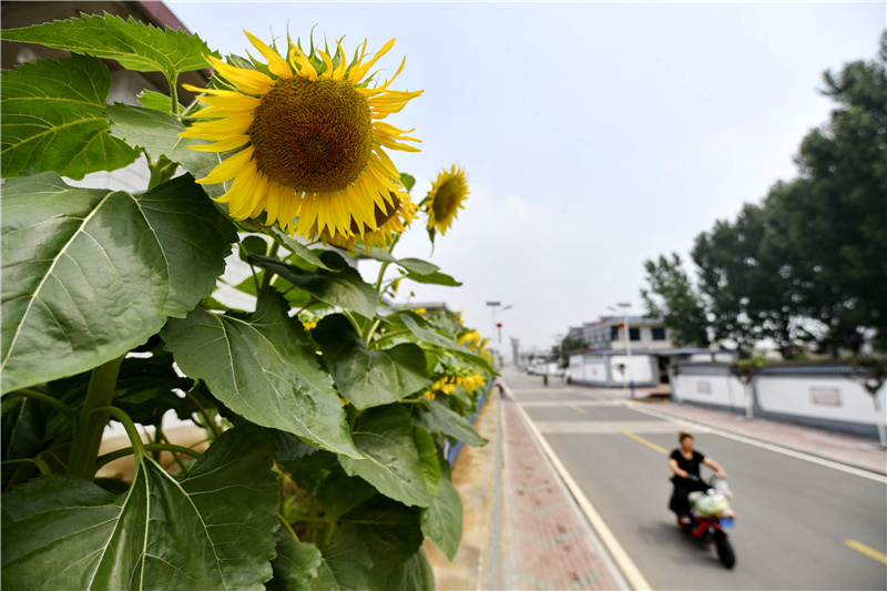 河北省滦州市榛子镇东河南庄村沿街居民种植的油葵(7月10日摄)。